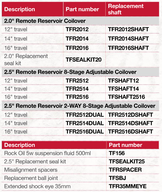 TFSEALKIT20 TF SHOCK SEAL KIT - 2.0" BODY