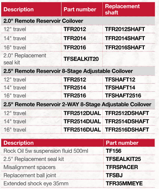 TFSEALKIT25 TF SHOCK SEAL KIT - 2.5" BODY