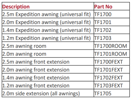 TF1700FEXT TERRAFIRMA 2.5 M AWNING FRONT EXTENSION