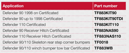 TF883KIT90: TF REAR STEP ASSY TOW BAR DEF TD5. 90 98-2016