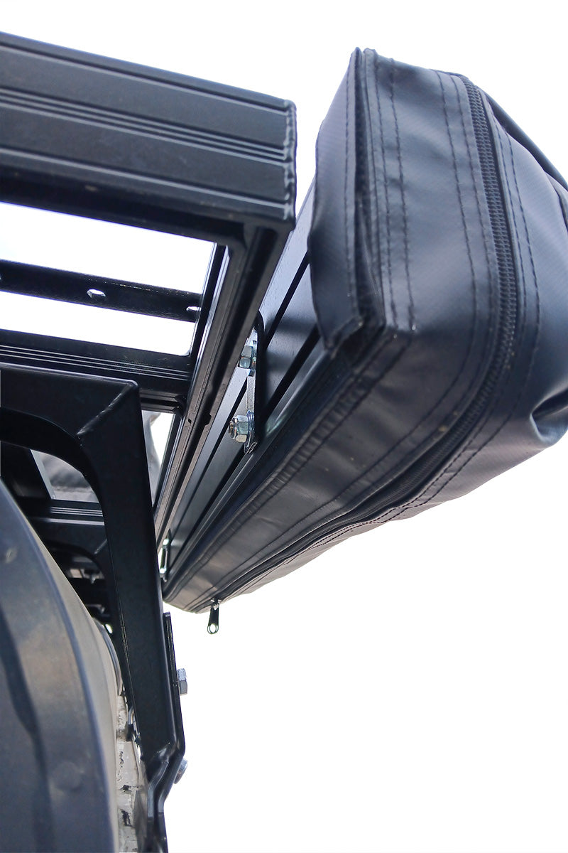 roof rack . Stored in waterproof zip awning bag to attach to the side or rear of your vehicle.